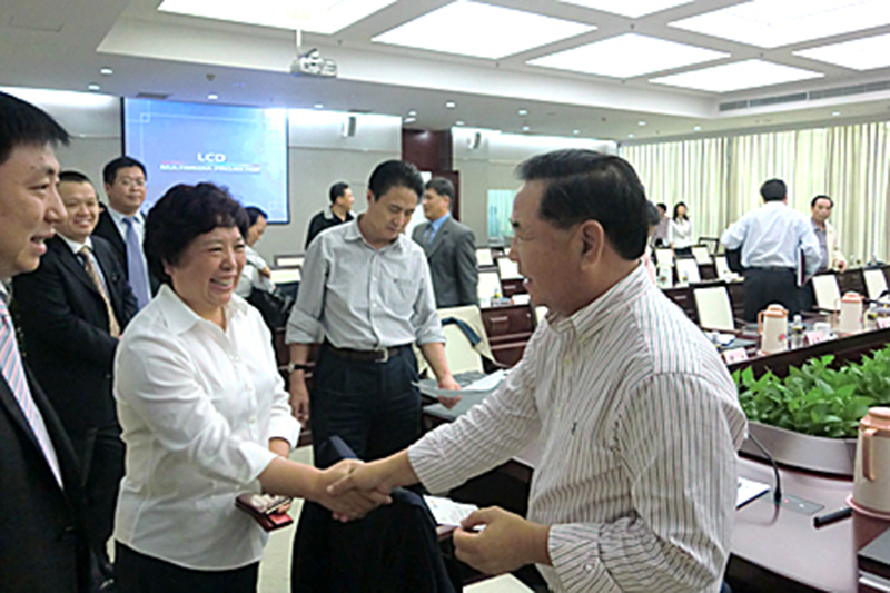 商業(yè)管理公司董事長萬文英與海南省委書記衛(wèi)留成親切握手