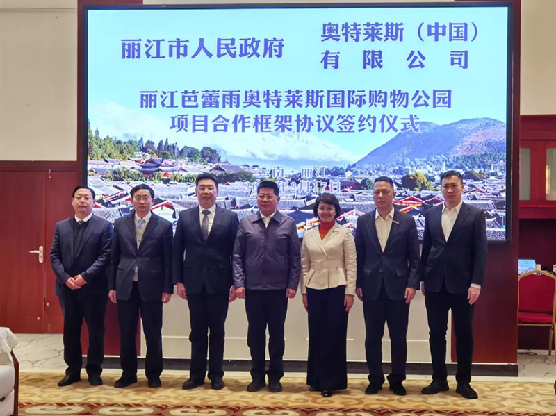 2022年2月17日,奧特萊斯(中國)有限公司總裁拜訪麗江市政府,與麗江市蘇永忠市長在麗江座談,并見證《麗江芭蕾雨奧特萊斯國際購物公園項目合作框架協(xié)議》的簽署。奧特萊斯(中國)助理總裁李曉薩、投資拓展中心總經理周毅,以及麗江市政府、市發(fā)改委、市投資促進局、市住房和建設局、市文旅局、玉龍雪山管委會、玉龍縣政府等主要領導參會。