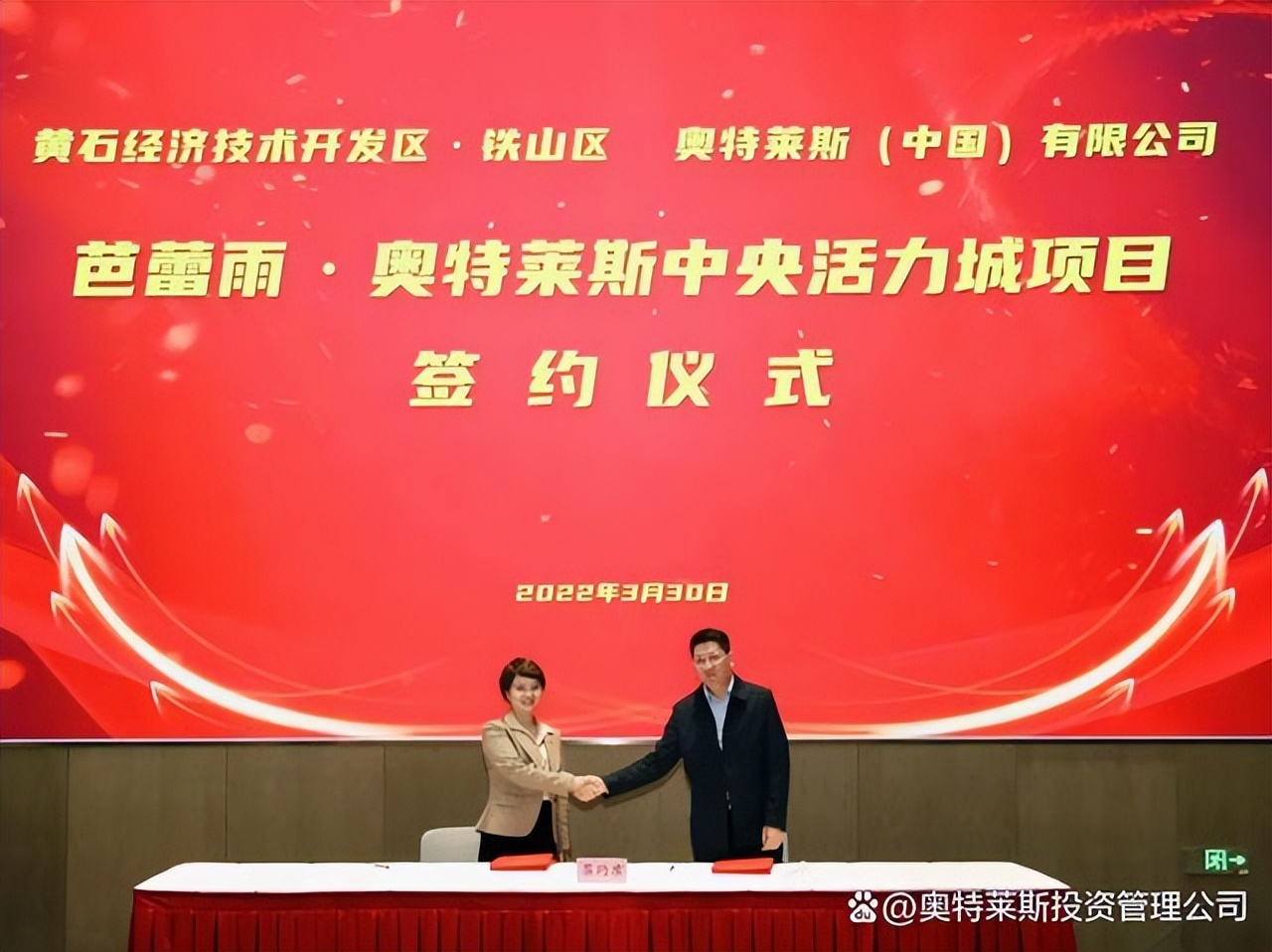 3月30日,奧特萊斯(中國)有限公司總裁拜訪黃石市政府,與黃石市吳之凌市長進(jìn)行會談,并與黃石市經(jīng)開區(qū)·鐵山區(qū)簽署“黃石芭蕾雨·奧特萊斯中央活力城項(xiàng)目”合作協(xié)議。黃石市政府、經(jīng)開區(qū)管委會·鐵山區(qū)政府相關(guān)部門,以及公司助理總裁李曉薩參會。