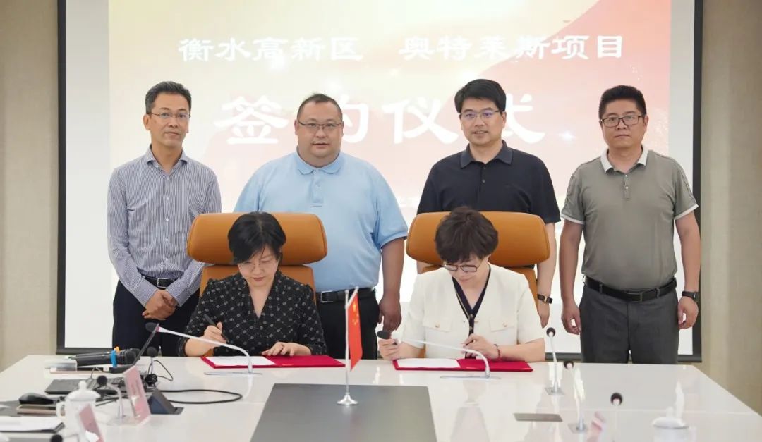 簽約儀式上,衡水高新區(qū)科技創(chuàng)新中心主任駱妍與奧特萊斯(中國)副總裁秦莉代表雙方正式簽約。