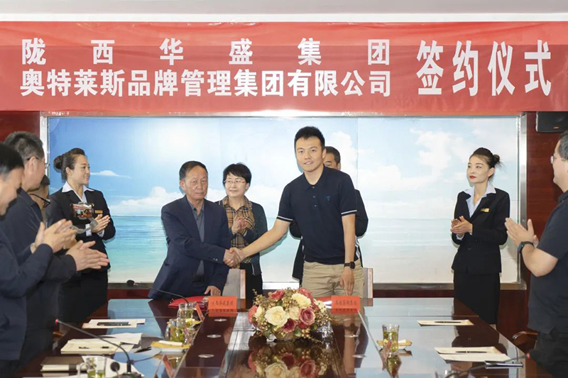 奧特萊斯(中國)業(yè)務(wù)拓展中心總經(jīng)理左祺與隴西華盛集團(tuán)董事長(zhǎng)柴彥章代表雙方公司簽署合作協(xié)議。