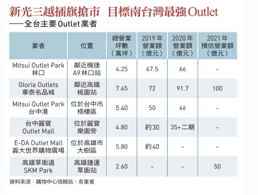 臺灣主要奧萊營業(yè)額統(tǒng)計(jì)(2019-2021)