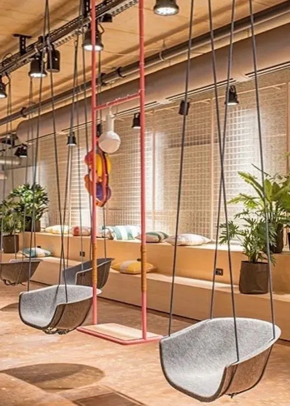 空間以明亮的粉彩和摩登風(fēng)格將顧客帶入加利福尼亞的風(fēng)情世界,還通過一系列不同尋常的材料組合,為顧客提供不一樣觸覺、視覺體驗的潮酷餐飲空間。顧客可以選擇坐在落地窗前邊品嘗美食,邊欣賞對面動物園的猴山;也可以選擇以鳥籠為靈感設(shè)計的沙發(fā)區(qū),或是以階梯座的秋千林立的休閑區(qū)等。