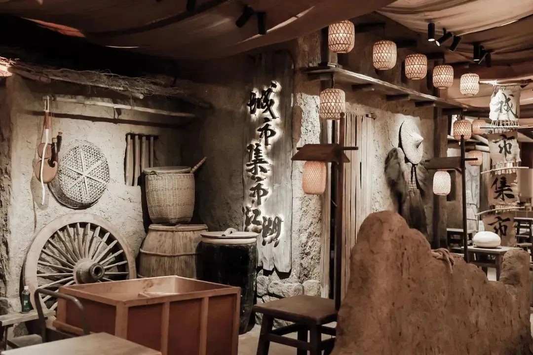 這里一草一木,一磚一瓦,基本上都還原了上世紀(jì)八十年代老長(zhǎng)沙的建筑。在店內(nèi),有煙火氣息的老式磚樓鱗次櫛比,老舊的霓虹燈箱略帶昏暗地閃爍著,竹制的座椅被整齊的擺放。囊括了吃喝玩樂(lè)各個(gè)方面,隨便抓起一家都能勾起一堆人的青春回憶。