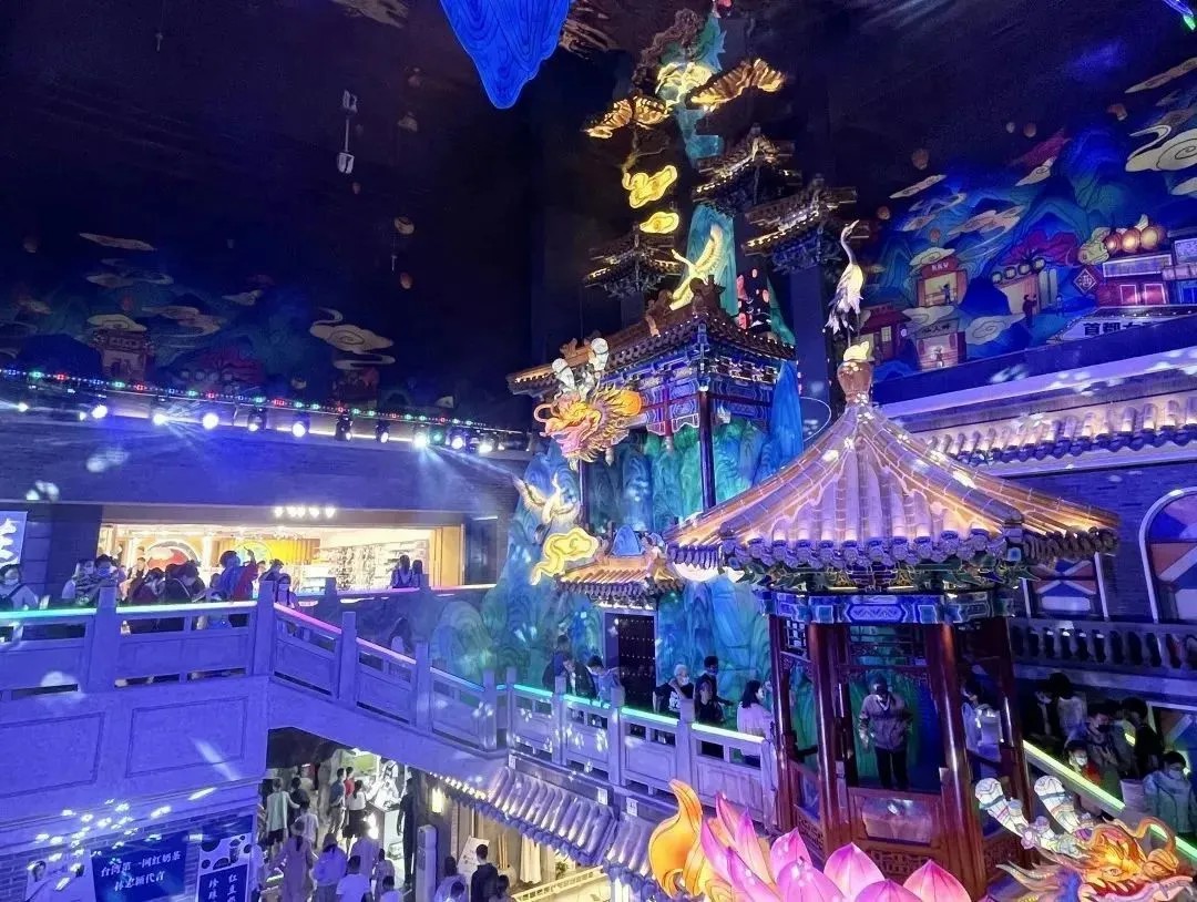 作為國(guó)內(nèi)首個(gè)“沉浸式文商旅綜合體”,“秦淮·戲院里”在秦淮文化的基礎(chǔ)上,抽取出奇市、燈山、幻戲的典型場(chǎng)景意向與文娛主題,將主題景觀、演藝內(nèi)容、商戶(hù)業(yè)態(tài)等有機(jī)融合在一起,努力為用戶(hù)帶來(lái)身臨其境的奇幻體驗(yàn)。