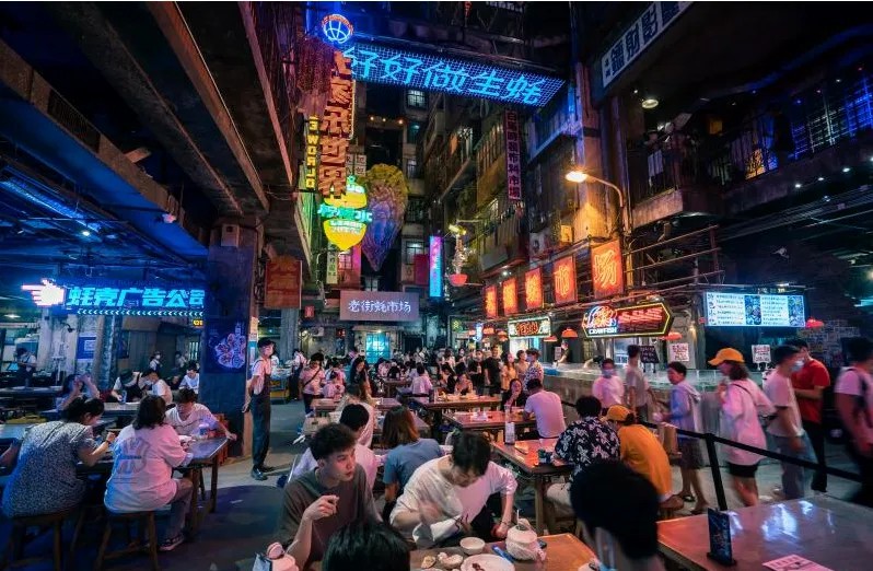 憑借巴渝傳統(tǒng)特色建筑的吊腳樓,光怪陸離的夜景,以及媲美《千與千尋》的二次元的視覺(jué)呈現(xiàn),在開(kāi)街10年后進(jìn)入“黃金時(shí)代”,借助新媒體和IP話(huà)題發(fā)酵不斷攀升,發(fā)展成為如今的頂流的IP網(wǎng)紅地標(biāo)。