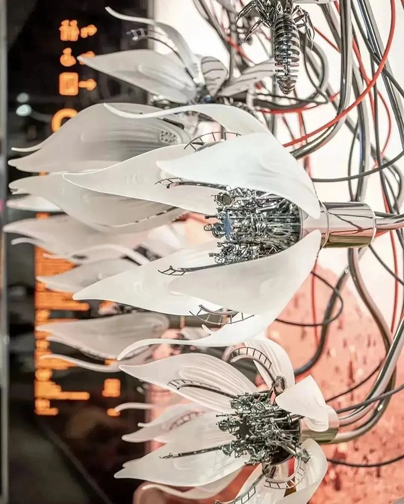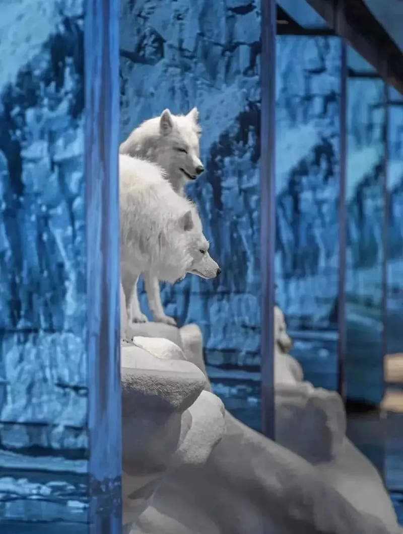 正如北京SKP-S內(nèi)的“未來(lái)農(nóng)場(chǎng)”以仿生羊?yàn)榱咙c(diǎn),成都“平行世界”里猩猩漫步太空引人遐想,武漢SKP亦在負(fù)一層SKP-S精心構(gòu)建了特色主題藝術(shù)空間《EARTH 2124》。該空間巧妙劃分為三大區(qū)域:北極熊區(qū)《無(wú)邊的浮冰》,寓意著冰川的消融與生命的掙扎;走廊區(qū)《新大陸架》,象征著未來(lái)世界的重構(gòu)與探索;企鵝區(qū)《覆羽》,則是對(duì)極地生物適應(yīng)環(huán)境、重獲新生的美好愿景。整個(gè)空間緊扣“以未來(lái)之眼審視全球變暖,攜手極地生靈共繪新篇章”的深刻主題。