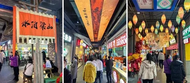 宋朝食間是以大宋文化為主題的街區(qū),還原宋朝文化、藝術(shù)、生活場(chǎng)景,加入水泊梁山和水滸英雄好漢場(chǎng)景元素,打造了沉浸式宋風(fēng)實(shí)景生活餐飲主題街區(qū)。