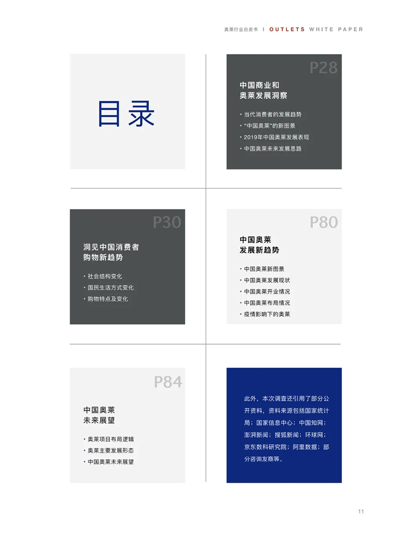 為了及時(shí)總結(jié)中國(guó)奧萊的發(fā)展?fàn)顩r和運(yùn)營(yíng)經(jīng)驗(yàn),引導(dǎo)中國(guó)奧特萊斯產(chǎn)業(yè)在后疫情時(shí)代的健康、快速發(fā)展,我們組織編寫了這部《2020中國(guó)奧特萊斯行業(yè)白皮書》。我們基于對(duì)后疫情時(shí)代中國(guó)經(jīng)濟(jì)的內(nèi)生動(dòng)力,以及中國(guó)消費(fèi)格局、消費(fèi)趨勢(shì)新變化的深?分析,并通過線上問卷調(diào)查與線下深度訪談相結(jié)合的方式,客觀分析了中國(guó)奧特萊斯的發(fā)展表現(xiàn),綜合闡述了中國(guó)奧特萊斯的未來發(fā)展思路。