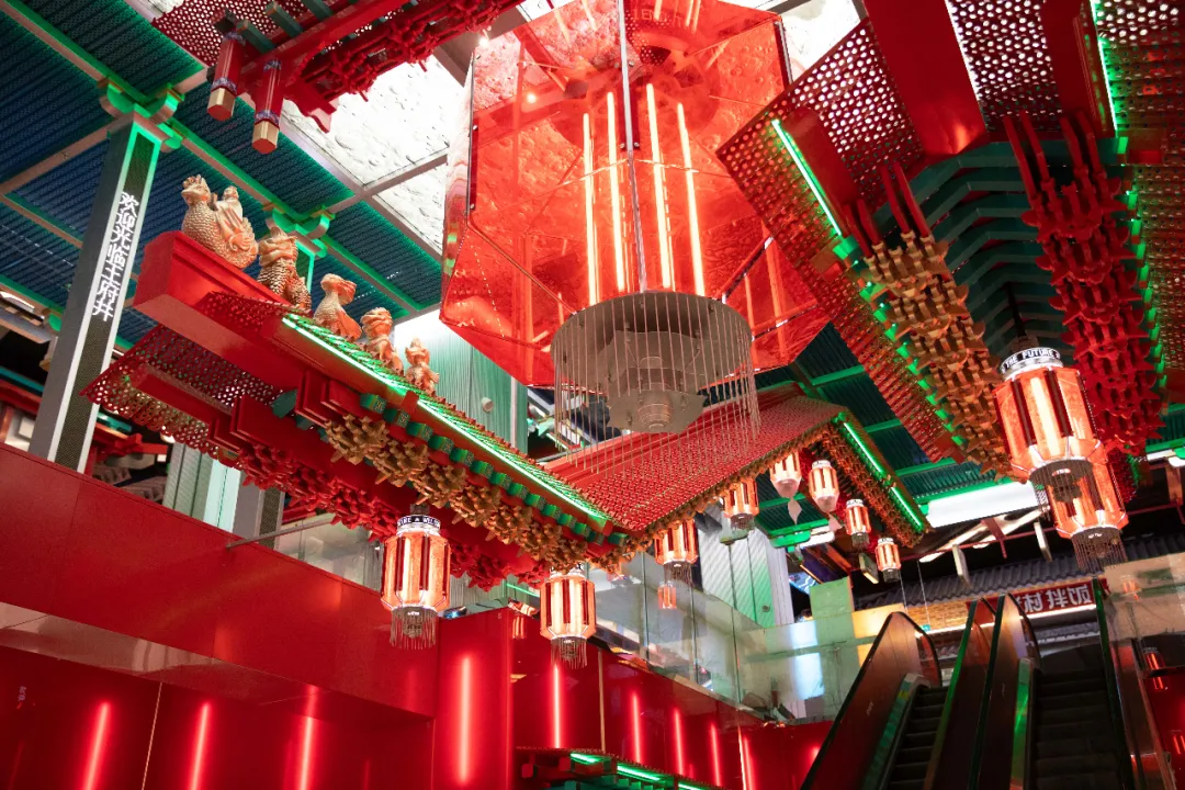 同樣,定位為國內(nèi)首個(gè)「新國潮」購物中心的北京·王府井喜悅,依托“中國核,潮流殼”的定位概念融合傳統(tǒng)文化與現(xiàn)代審美,運(yùn)用大量中國傳統(tǒng)文化素材進(jìn)行創(chuàng)意設(shè)計(jì),同時(shí)通過人工智能、大數(shù)據(jù)等技術(shù)解決購物中心數(shù)智痛點(diǎn),是一座推動(dòng)藝術(shù)、文化和科技跨界融合的城市地標(biāo)。