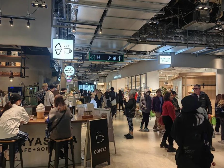 在東京的一座Tokyu Plaza中,就見到其舍棄半層經(jīng)營面積,打造出公共休閑空間。當(dāng)然,所謂“舍棄”也并非完全屏蔽零售商品售賣,只是有取舍地將更能豐富消費(fèi)者游逛體驗(yàn)的特定零售品類包羅其中。這些商品或品牌的陳列更像是美陳道具,沒有出跳的展柜與收銀臺(tái),總能讓進(jìn)場顧客在不經(jīng)意間隨手拿起挑選。