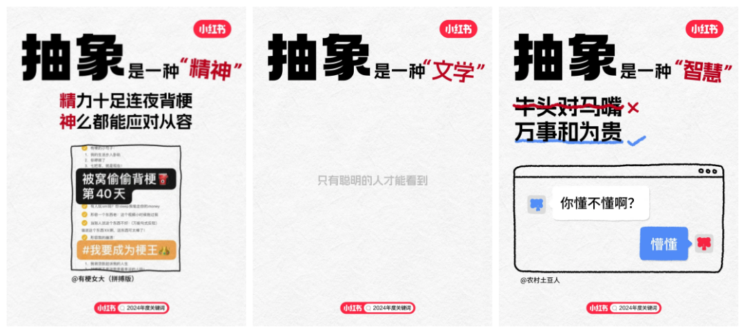 隨著2024年度關(guān)鍵詞“搞抽象”在小紅書上的火爆,我們不難發(fā)現(xiàn),無論是用戶對于生活哲學的深度探索,還是對于藝術(shù)、文化乃至日?,嵥槭挛锏莫毺卦忈?,都以一種前所未有的熱情被記錄與分享。
