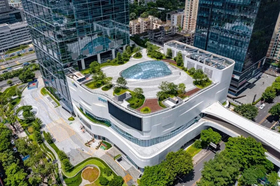 此外,深圳天河城的商業(yè)區(qū)域與3萬平方米的屋頂花園共享,將生態(tài)和綠色空間巧妙地融入購物中心的設(shè)計之中。為了確保商業(yè)空間與外部自然環(huán)境的無縫對接,深圳天河城特別設(shè)計了空中步廊,將項(xiàng)目與圍嶺山公園連接起來,實(shí)現(xiàn)了從屋頂花園到自然公園的流暢過渡,為消費(fèi)者提供了一個連續(xù)的游逛體驗(yàn)。