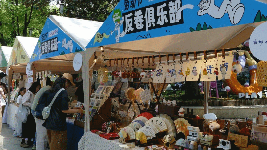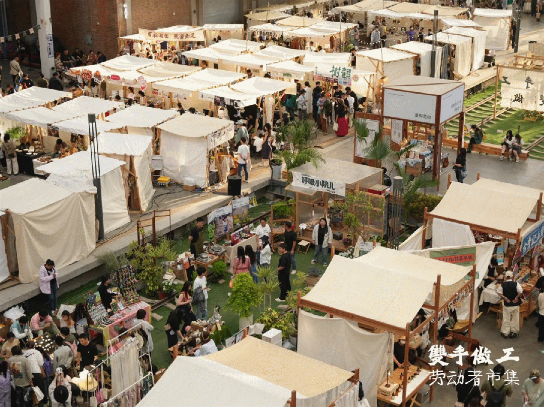 除了戲劇演出,上生·新所公共空間五一期間也舉辦了以“松弛療愈”為主題的手作市集活動,60+原創(chuàng)設(shè)計攤主為大家?guī)硪粓龇淳懑熡凳屑?,向市民游客傳遞各自的“慢生活”哲學(xué),讓我們找到都市煙火氣、找到人與人單純善意的社交,讓藝術(shù)浸潤生活,成為城市文化能量的聚集地。