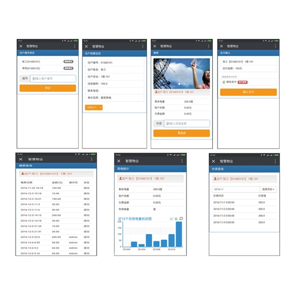 ●實(shí)現(xiàn)微信在線自助繳費(fèi)。 支付方式支付微信支付。查詢近6個(gè)月的繳費(fèi)記錄。統(tǒng)計(jì)顯示近12個(gè)月的用電量信息。歷史抄表記錄查詢。